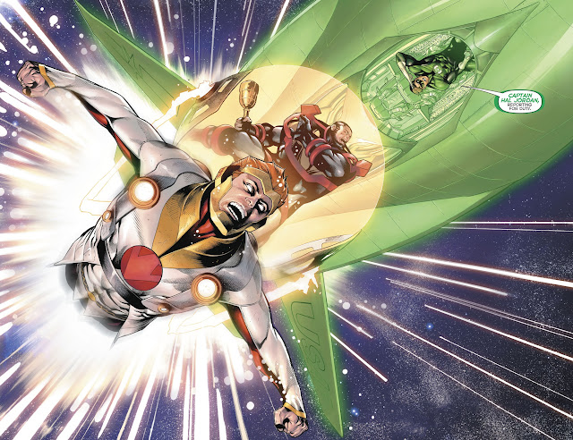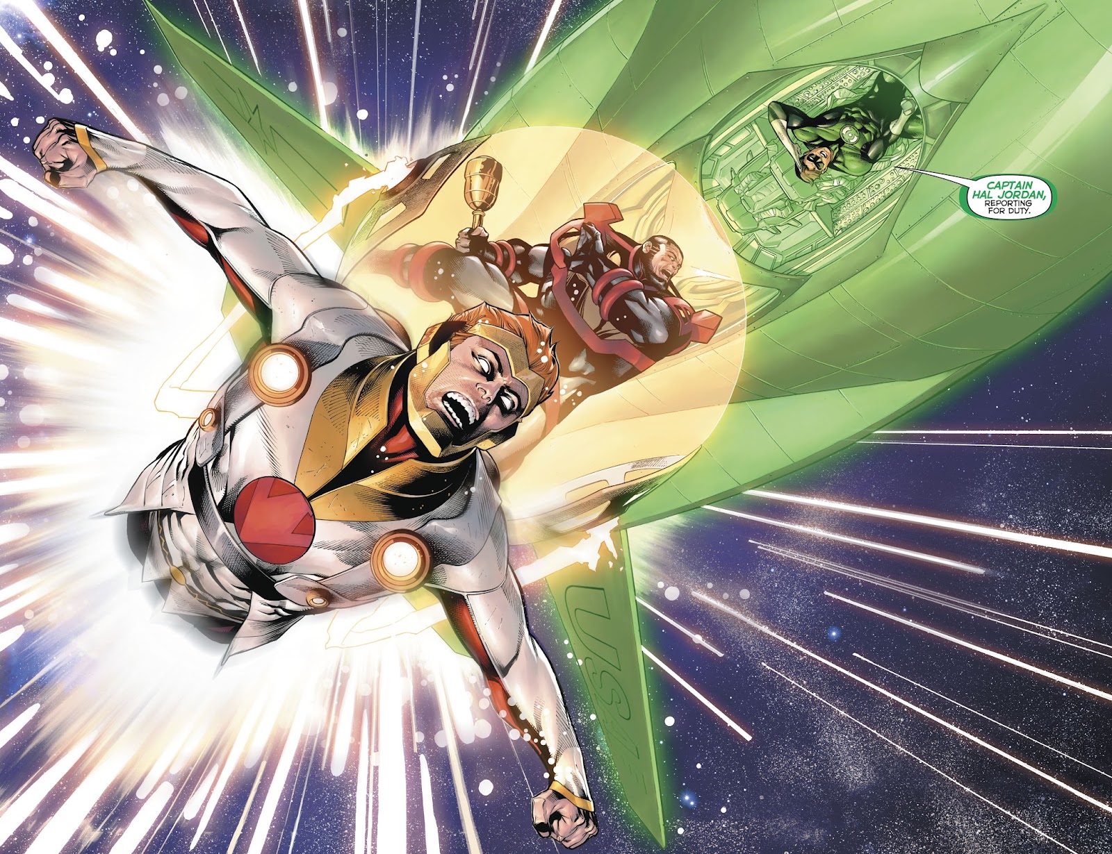 Después de esto vemos a los Green Lanterns, en el Roxoverso este cuerpo de policías intergalácticos funciona como una especie de ejercito dividido en escuadrones, y uno de sus lideres es Hal Jordan.